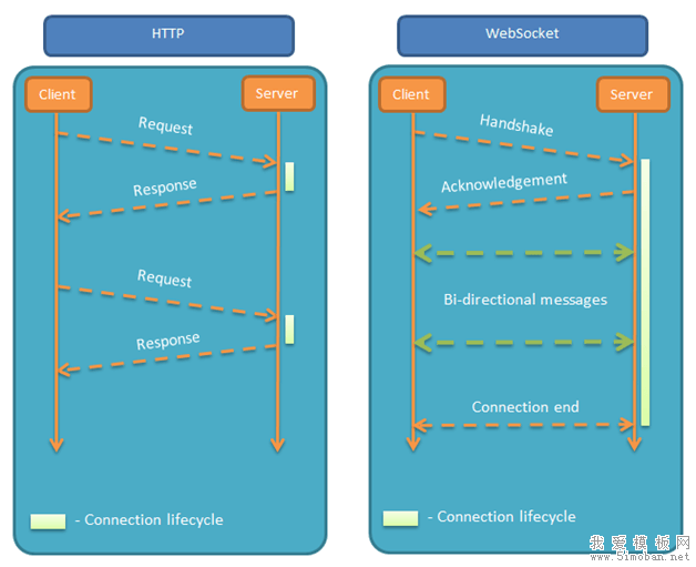 WebSocket协议在2008年诞生,2011年成为国际标准。所有浏览器都已经支持了。