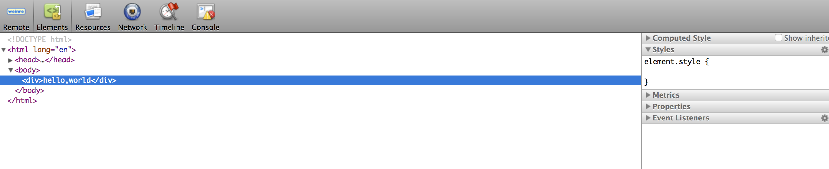 weinre是web inspector remote的缩写,它是一个可以让你在电脑上调试在手机上打开的移动端网页的调试器。