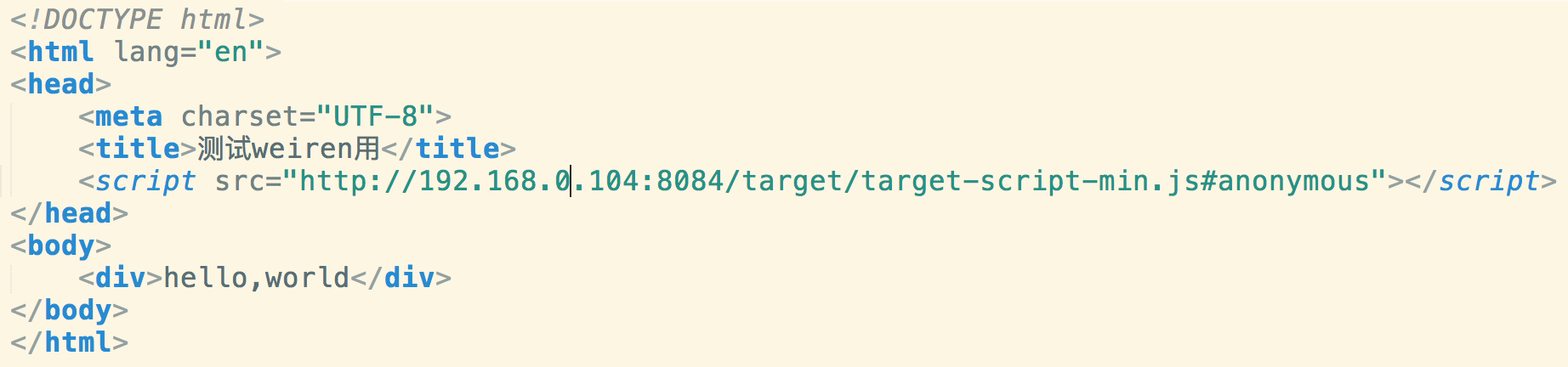 <script src="http://192.168.0.104:8084/target/target-script-min.js#anonymous"></script> 这是我测试的例子