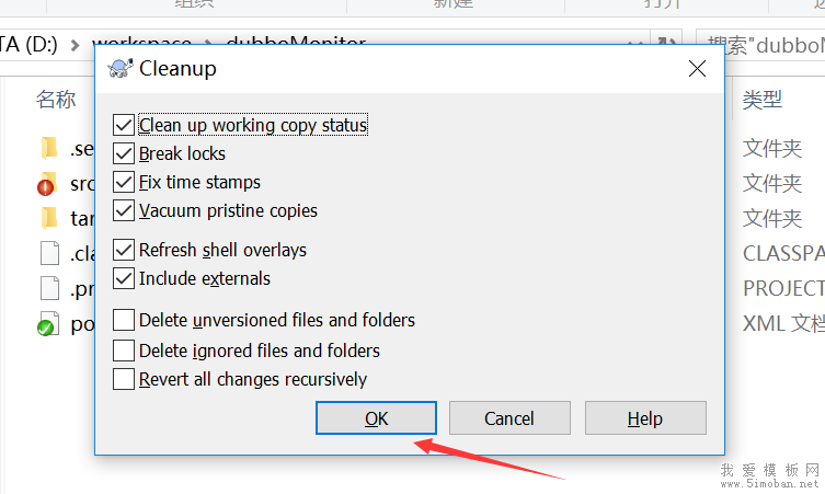 SVN被锁定,svn is already locked解决方法 来源:未知 作者: 类型:图文教程 点击次数: 发布时间:2019-07-09 17:48:21 我爱模板网在用Tortoise SVN提交代码的时候遇到一个问题,明明有文件修改了,提交的时候提示svn is already locked,svn被锁住了?遇到这种情况,我通常是将代码移到一边,然后SVN Update,重新下载,然后再将刚才的代码覆盖,重新提交。今天的情况不行。找了半天,在网上找到了解决办法。 遇到这种问题的原因有很多,网络慢,磁盘不够,用户取消等等,导致svn代码被锁定; 解决方案: 1、右键->TortoiseSVN->Clean up... 2、点击clean up,弹出框,勾选下图所示选项,点击OK即可 TortoiseSVN官方对clean up的解释:它的作用就是查找工作拷贝中的所有遗留的日志文件,删除进程中工作拷贝的锁。 TAGS: TortoiseSVN 上一篇: linux搭建SVN服务器 并且实现项目自动同步 下一篇: 淘宝客佣金链接在哪