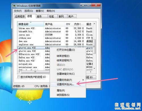 gta5 圣安地列斯和罪恶都市鼠标无法控制人物解决方法 来源:我爱模板网 作者: 类型:图文教程 点击次数: 发布时间:2020-08-13 22:00:03 gta5 圣安地列斯和罪恶都市鼠标无法控制人物解决方法。这里以罪恶都市为例(圣安地列斯同理)。运行罪恶都市,然后回到桌面,按Ctrl键+Alt键+小键盘.键打开任务管理器,或在电脑任务栏里点击鼠标右键呼出任务管理器并打开。 任务管理器里打开菜单里的进程,如图所示。 在进程列表里找出游戏进程,并点击鼠标右键呼出菜单,并打开设置相关性。 在这里点击所有处理器前面的方框按钮取消所有选择,如图所示。 在这里只要勾上一个CPU就行了,最后点击确定,如图所示。 设置完毕就关闭任务管理器,进入游戏,就可以玩游戏了 TAGS: gta5 圣安地列斯 罪恶都市 上一篇: 无线网连接成功,手机可以上网电脑却不能上网 下一篇: win7升级win10简易教程