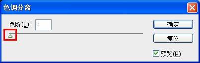 第二步、该图片应该处于RGB模式下,点击图像->调整->色调分离,会弹出一个对话框,对话框中有一个可以拖动的滑块,拖动滑块并观察图片的变化,如果仔细观察就会发现某些颜色被丢弃了,这就是压缩PNG的原理。数值越小,图片尺寸越小。