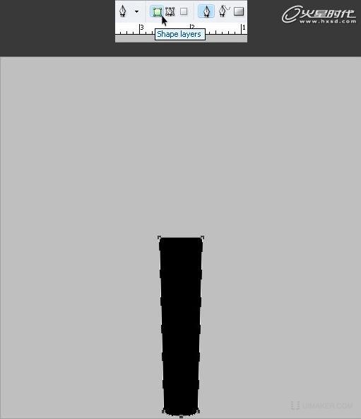 第二步、创建一个新图层命名为“PEN”。使用钢笔工具(P)绘制下图所示的形状。绘制形状时,一定要选择“形状图层”的选项。我们把这个形状叫做“打底”,添加图层样式渐变叠加如下图所示: