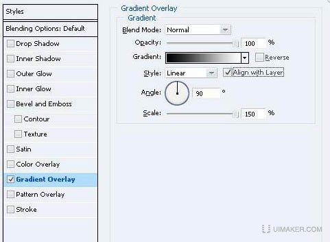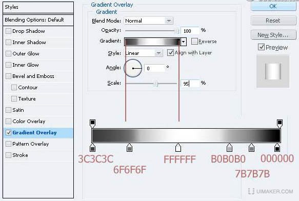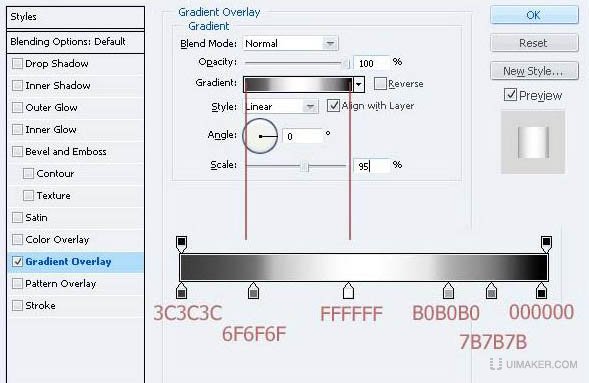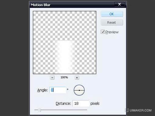 第四步、你需要给钢笔的主体添加一些细节。按CTRL并单击“body”层,创建一个新层,用白色填充。按Ctrl + T是图层的宽度为原来的75%。然后去“滤镜>模糊>动感模糊”,单击后,按照下面所示的参数设置。最后,降低图层不透明度为50%,添加图层样式中的渐变叠加如下所示。