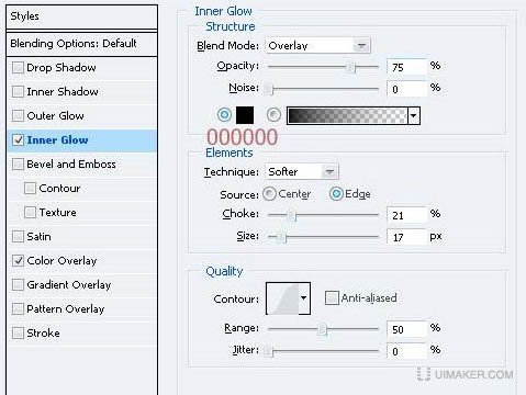 第五步、使用矩形工具(U)或钢笔工具(P)创建下图所示的形状,并将其命名为“NECK”。给它添加图层样式如下。(overlay意为叠加)。