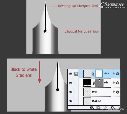 第十三步、按照步骤7和步骤8的操作在笔尖的下部添加阴影,如图所示。
