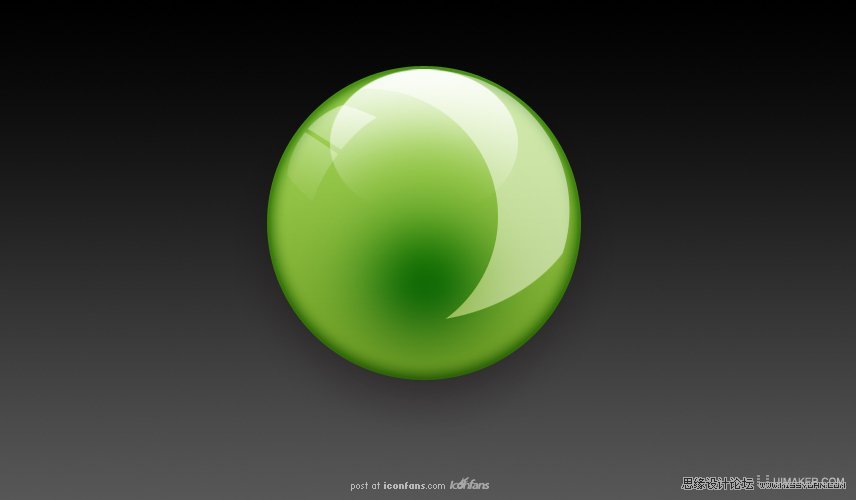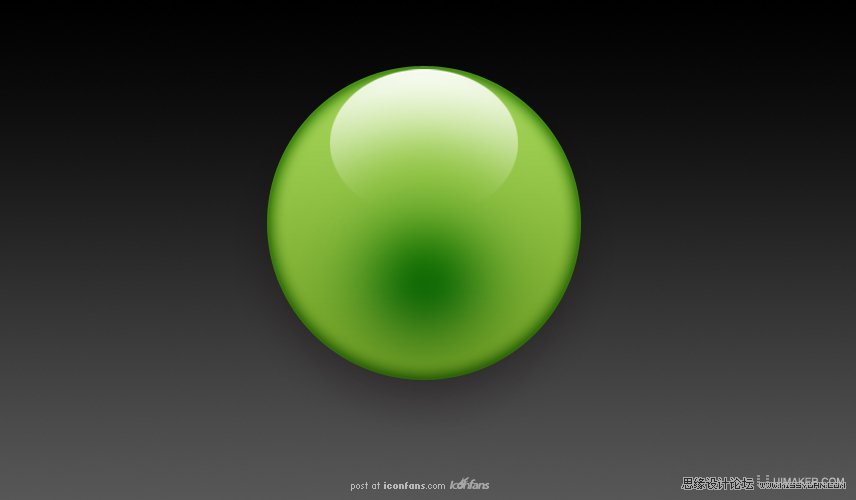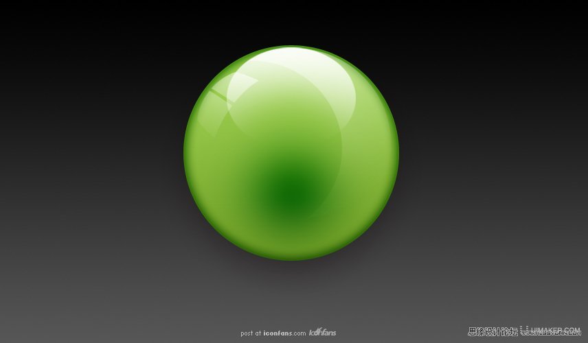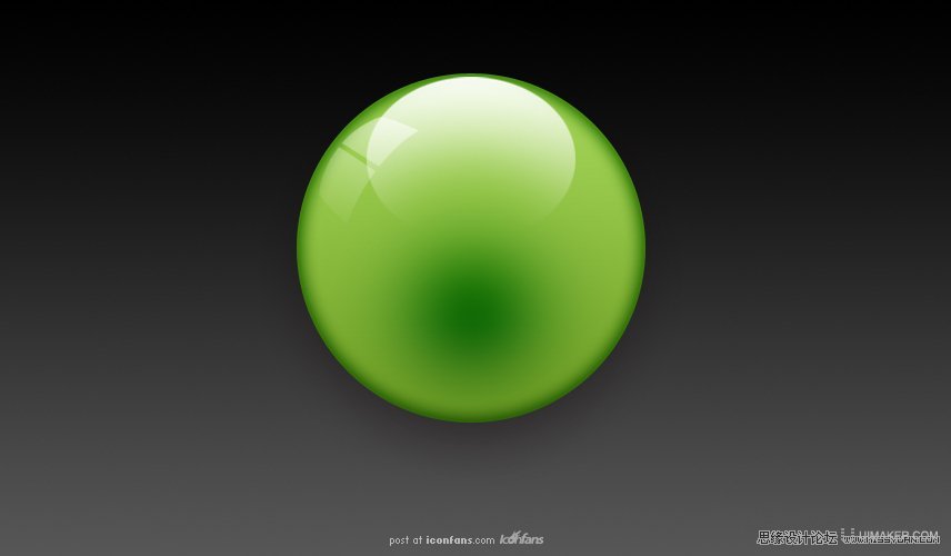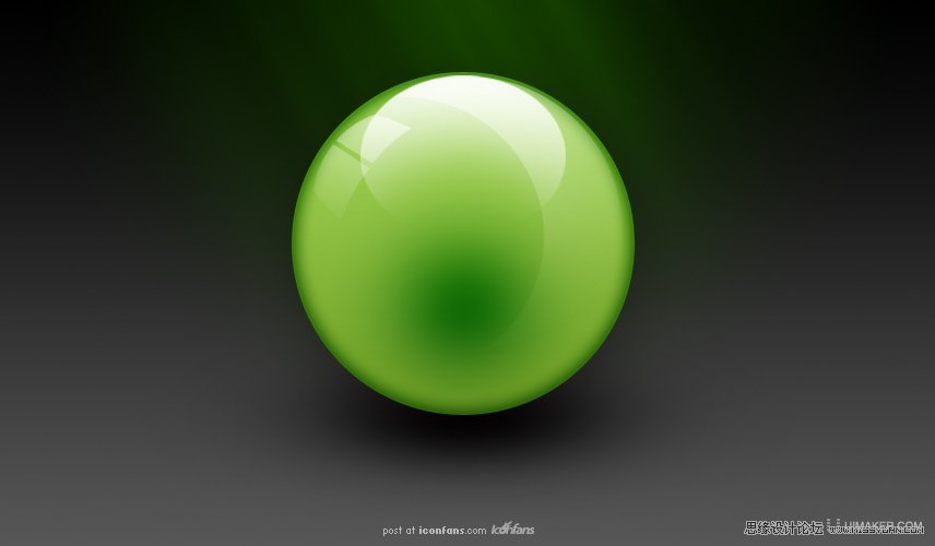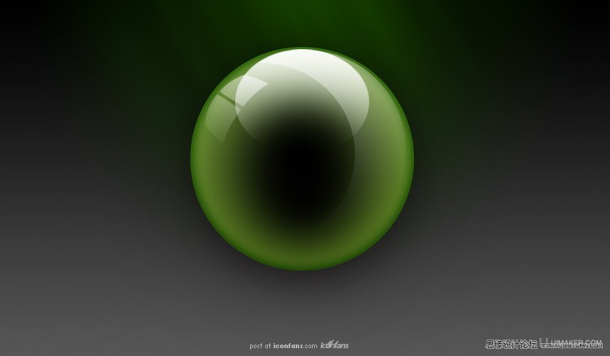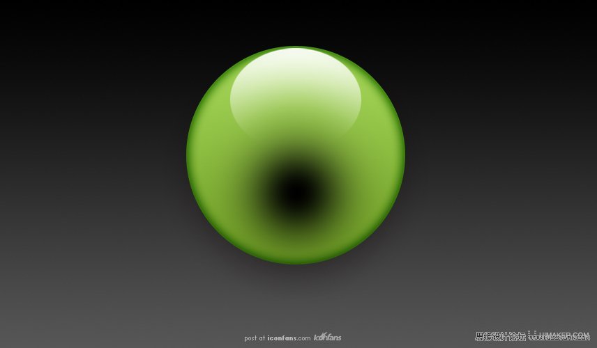 第十六步、 新建一个图层, 使用与球体大小相当的黑色0硬度笔刷, 绘出如下效果, 并使用自由变化工具压缩成为球体的一个阴影(不要忘记将此图层放在球体的下方):