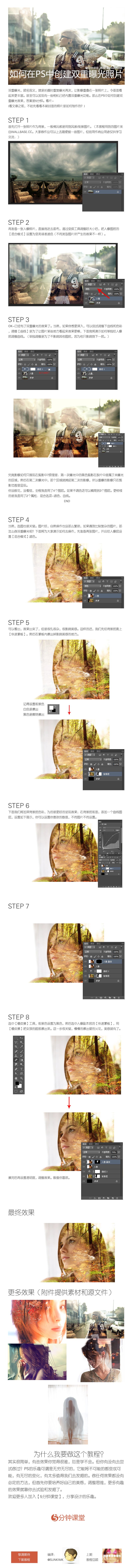 如何在PS中创建双重曝光照片 来源:未知 作者: 类型:图文教程 点击次数: 发布时间:2015-08-12 14:47:49 双重曝光,顾名思义,就是拍摄时重复曝光两次,让影像重叠在一张照片上,令画面看起来更丰富。甚至可以发现有一些相机已经内置双重曝光功能。 素材及PSD下载 → http://vdisk.weibo.com/s/aqDxiifwHjH4j TAGS: 如 何在 中 创建 双重 曝光 照片 双重 曝光 上一篇: PS打造超帅气凸版印刷效果 下一篇: 速战速决!如何在3天内围绕UX快速设计天气应用