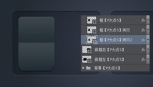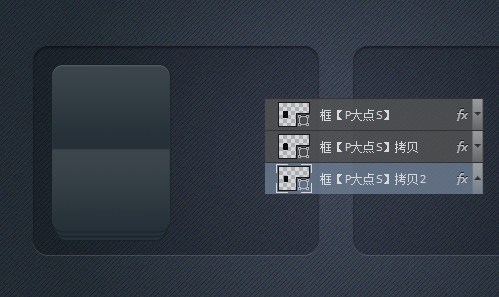 选择框图层,复制一层在下层,调整圆角矩形大小,宽度缩小4像素,高度不变,向下移动4像素。