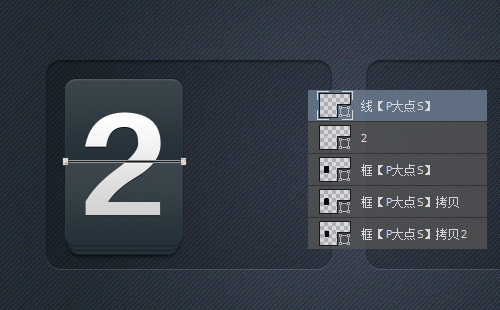 我们把最后一个图标修改一下,我们把高光图层,移动到文字5的下层,复制一层框图层在文字5的上层。并画一个矩形减去,组合形状组件。