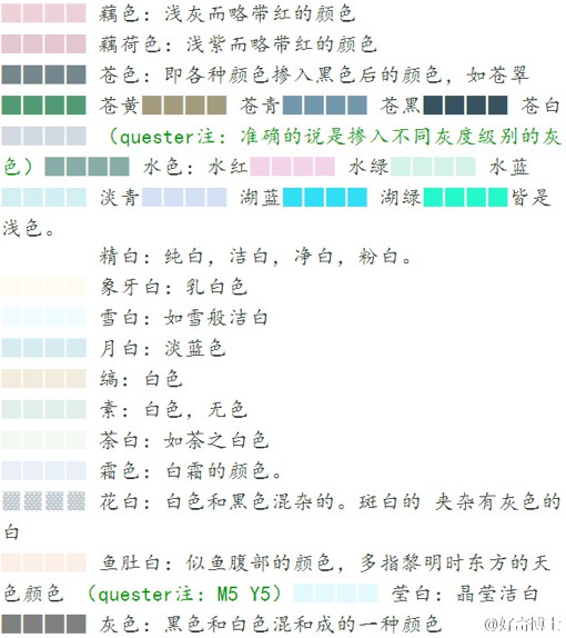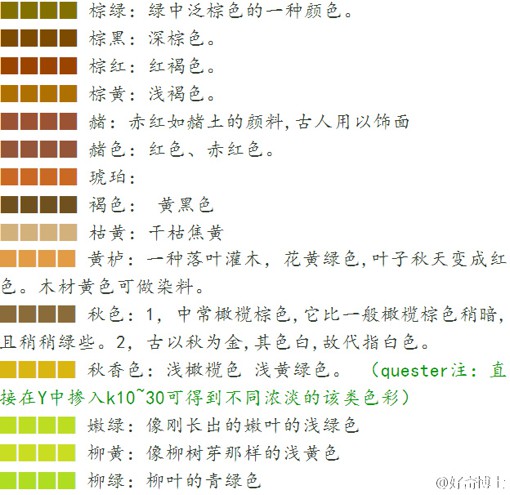 常见颜色对应的中文名称,颜色名字识别 来源:未知 作者: 类型:图文教程 点击次数: 发布时间:2015-09-27 15:27:19 虽然我爱模板网站长经常接触PS,可是很多颜色不知道叫什么名字(说起来,我叫得出名字的颜色,加起来都不超过十个,前段时间,还有人讽刺我,卡其色是什么色都不知道,我,我一个大老爷们知道那么多颜色干嘛!),今天在网上看到这几张图,将常见颜色和对应的名字罗列出来,非常不错,就发到这里了,不知道合不合适: TAGS: 常见 颜色 对应 的 中文 名称 名字 识别 虽然 上一篇: PS图层混合模式详解(六) 下一篇: ps亚麻布效果,ps亚麻布教程