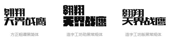 方正粗谭黑简体重心靠上,笔画显散,但是一款非常适合做变形的字体,特别是FPS等。