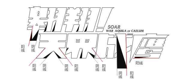 所谓阴阳收缩法就是根据阴阳关系调整笔画的粗细关系与整个字体结构的处理方法。似乎有点难理解,我们看个例子。