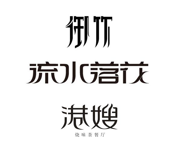 这几种字体都是阴阳线调整字根等位置处理的效果。当然也是调整了字体结构、重心,添加衬线等方法而成的。这里是阴阳线都是用了比较柔和的曲线收缩的,所以看起来很柔和、流动感很强,符合主题。