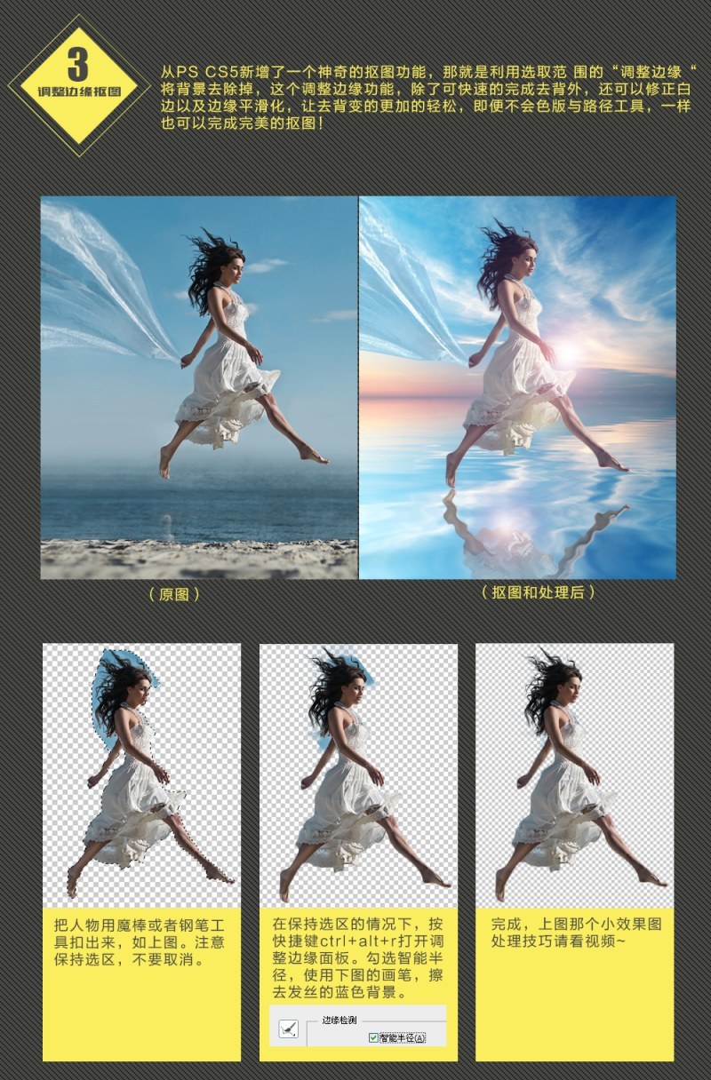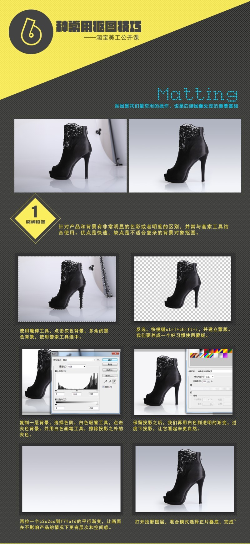 PS 6种常用抠图技巧 来源:未知 作者: 类型:图文教程 点击次数: 发布时间:2017-03-20 15:46:25 本文主要从产品和背景有明显的区别,背景比较单一的情况、浅色背景的毛发抠图、调整边缘抠图、透明玻璃瓶等的抠图、MASK PRO插件抠图以及背景复杂,头发复杂的图像等六方面讲解六种常见的抠图技巧: 以上就是六种抠图技巧,本文转载自 白无常电商设计,http://www.zcool.com.cn/u/2615012 TAGS: PS抠图技巧 上一篇: PS合成灯泡中的世界教程 下一篇: ps设计一个圣诞iphone icon图标教程