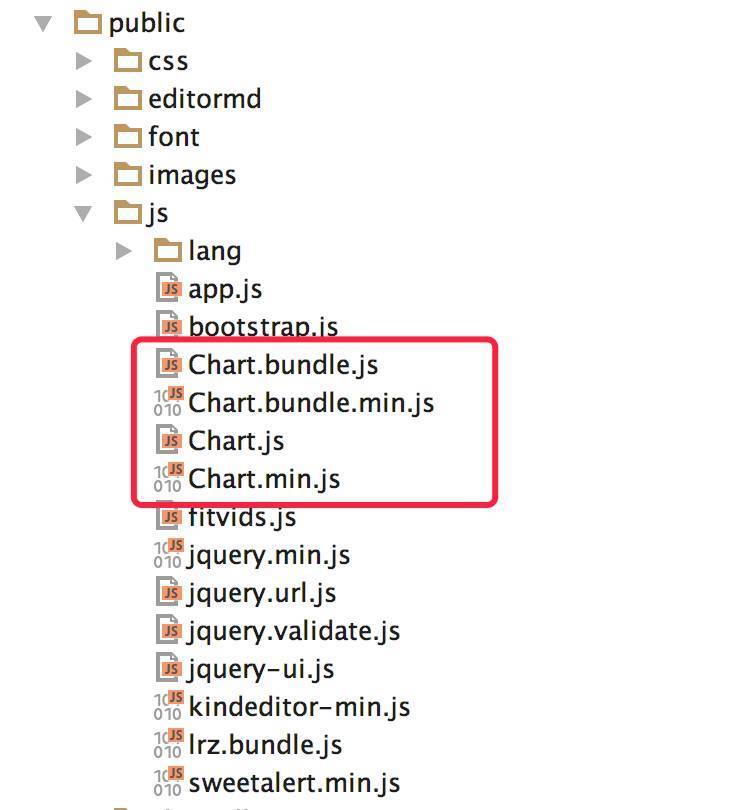 我这边选择的是下载了几个js文件,然后放置于Laravel项目的public/js目录下面,如下图: