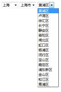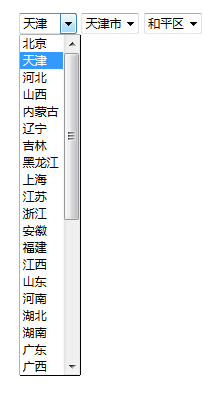 要求:写一个省市区(或者年月日)的三级联动,实现地区或时间的下拉选择。