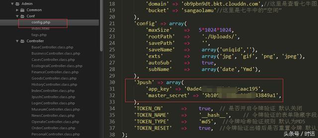 二、在你需要用到推送的模块的配置文件Config.php里填写极光的配置信息