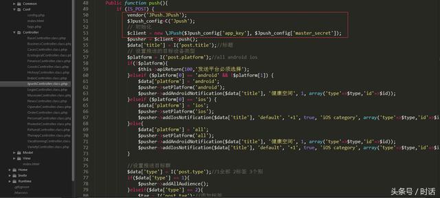 这里项目后台用的是php搭建的,选用的是thinkphp3.2作为框架,极光选用的版本号为3.4.3,特此说明一下,需要软件包的小伙伴可以在评论留言,不说废话了,下面上代码。一切以自生逻辑为依据,这里只是展示我的逻辑。
