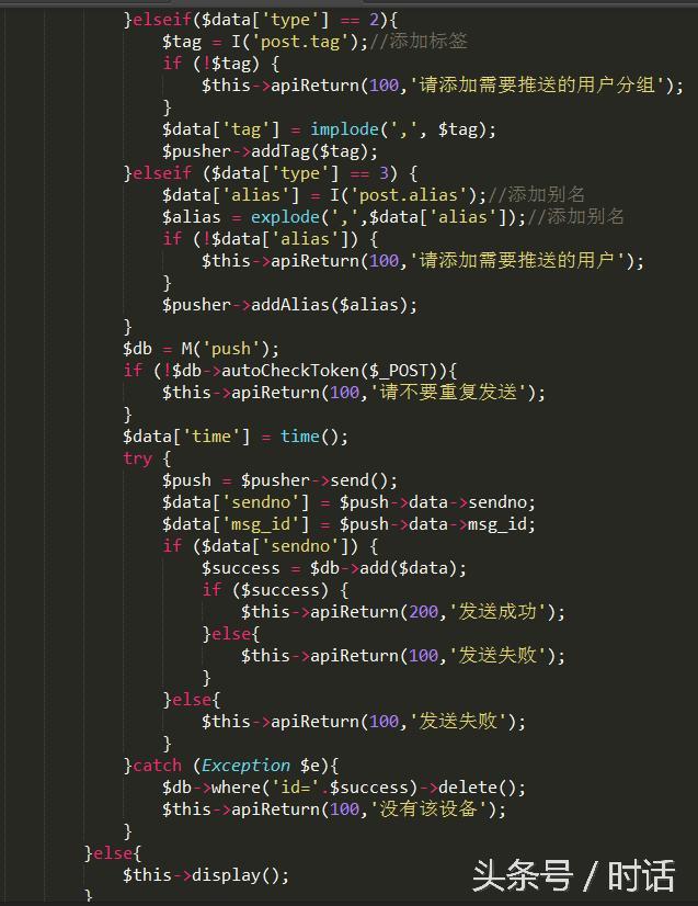 (这里我遇到一个问题,就是try catch 用不了极光的,只好用php自带的,如果那位小伙伴调试通过了,也通知我一声哈)