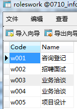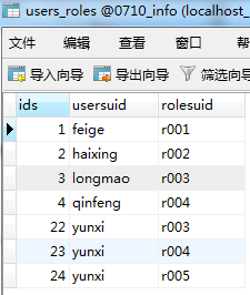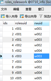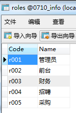 总共有5张表,users,roles和roleswork 3张表与另外2张表形成"w"型的关系,也是比较常见的一种权限数据库的方式,首先先做权限的设定,也就是管理层给不同用户设定不同权限。