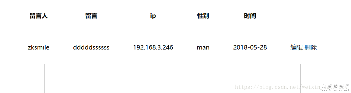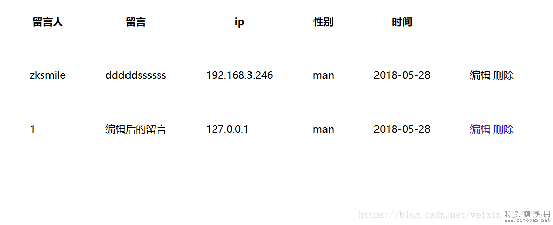 2、对留言的编辑功能包括只能对当前用户留的言进行编辑,然后保存。先看下效果图: