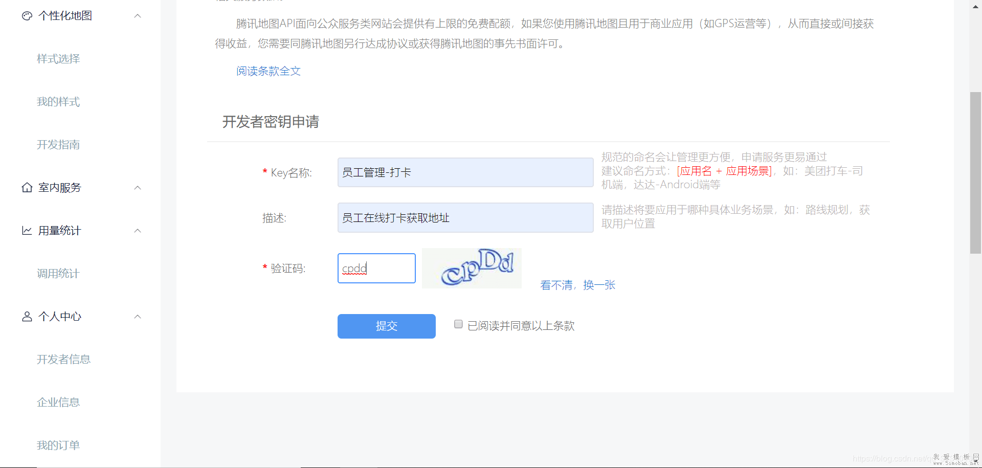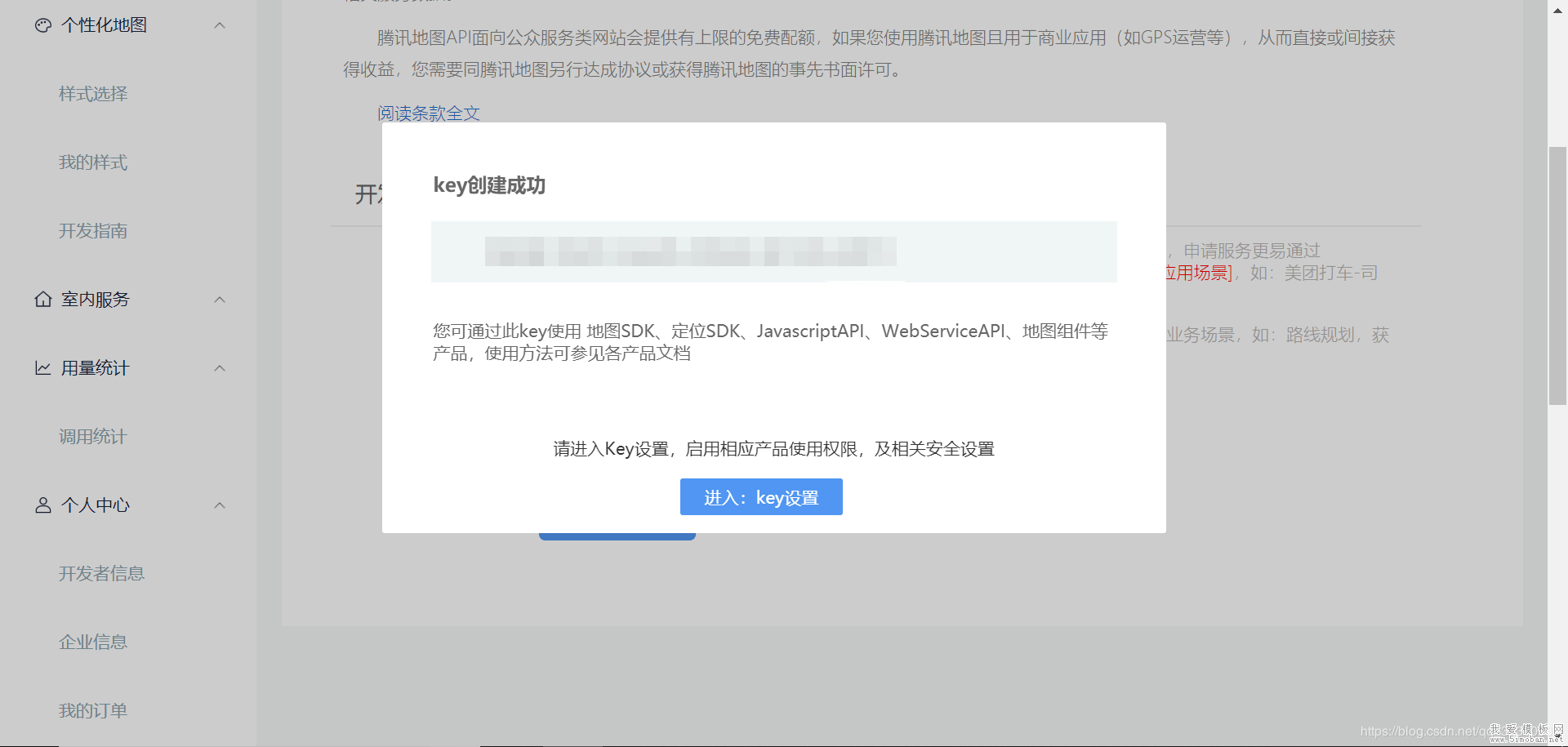 第一步:申请腾讯地图密钥(key),申请地址:https://lbs.qq.com/