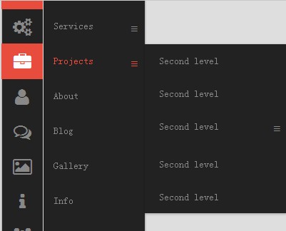 扁平响应式布局的黑色垂直jquery导航代码,可以实现跨平台,跨浏览器完美显示。当然,古董级浏览器IE6不支持。