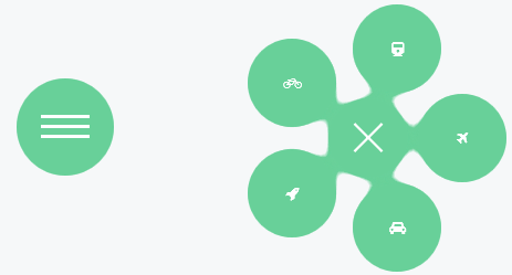 <nav id="gooey"> <input type="checkbox" class="menu-open" name="menu-open" id="menu-open"/> <label class="open-button" for="menu-open"> <span class="burger burger-1"></span> <span class="burger burger-2"></span> <span class="burger burger-3"></span> </label> <a href="#" class="gooey-menu-item"> <i class="fa fa-train"></i> </a> <a href="#" class="gooey-menu-item"> <i class="fa fa-bicycle"></i> </a> <a href="#" class="gooey-menu-item"> <i class="fa fa-rocket"></i> </a> <a href="#" class="gooey-menu-item"> <i class="fa fa-automobile"></i> </a> <a href="#" class="gooey-menu-item"> <i class="fa fa-plane"></i> </a> </nav>3、加入js:要显示您的设置,请将以下代码放在 script 标签 head 标签或者html body 标签或在一个单独的JavaScript文件。下面是一个例子,如何用粉红色粘稠的菜单设置菜单项的水平。请记住<code>gooeyMenu</code>的ID或class 函数调用相同的<code>nav</code>标签 id 或者 class在你的html类容中(本例, <code>nav</code> id 是gooey: