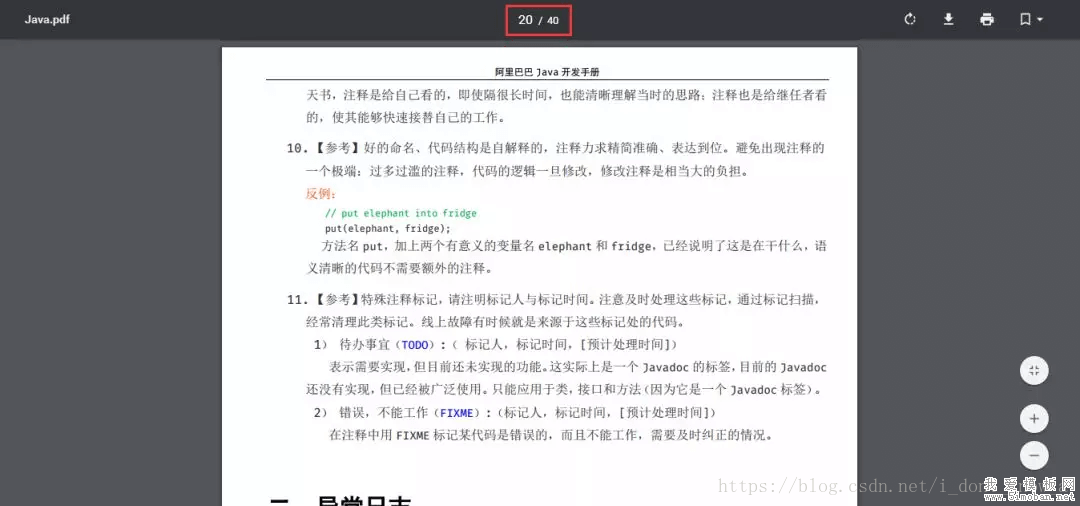 // 我的pdf文件放在项目的pdf文件夹下,名字叫做Java.pdf,指定PDF从20页开始阅读