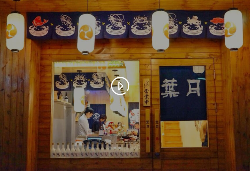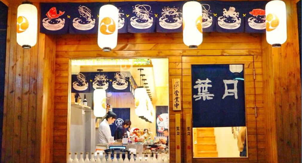 店内装饰着日本小巷中常出现的复古的灯笼和霓虹灯