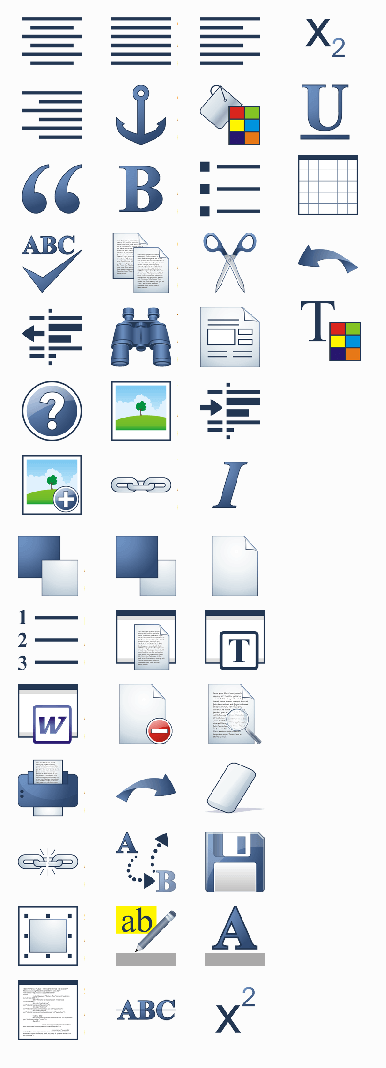 网站编辑器按钮ico图标 来源:未知 作者: 文件类型:ico 大小:0MB 点击次数: 发布时间:2016-05-12 13:29:09 去下载 资源介绍 128*128DPI超大网站编辑器按钮图标,例如:删除线图标,上标图标、复制剪切粘贴图标、文字颜色设置图标、插入图片图标、斜体加粗、水平对其图标等等。 使用方法 略 TAGS: 网站 编辑器 按钮 ico 图标 128 128DPI 超大 网站 下载 上一篇: 拟物化设计风格SNS图标 下一篇: 气泡表情图标ico格式下载