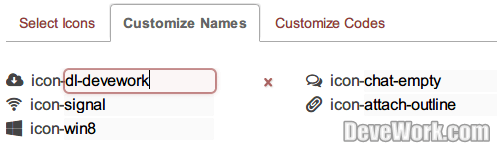 Fontell 高级使用技巧:在选择所需的图标,下载前可以点击Customize Names 来自定义选择器名称,这样就可以充分满足个性化需求。