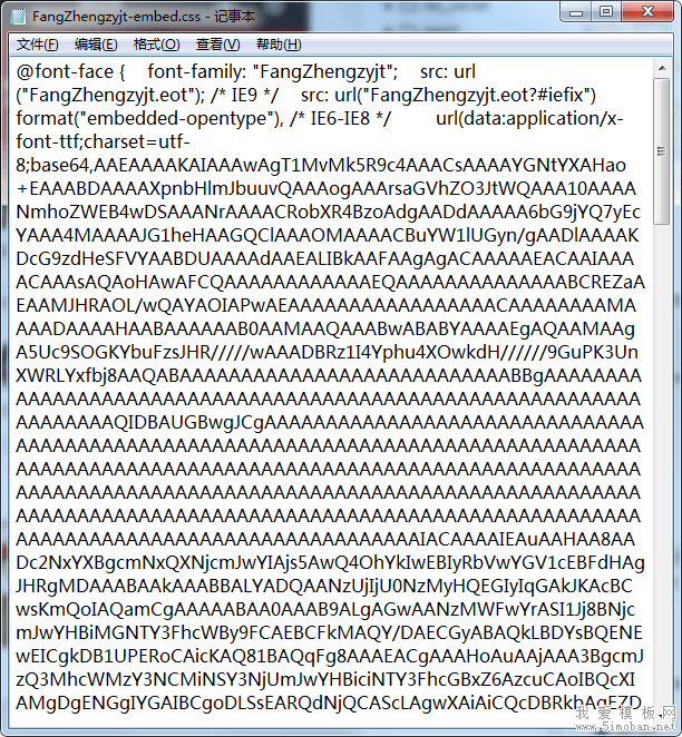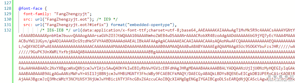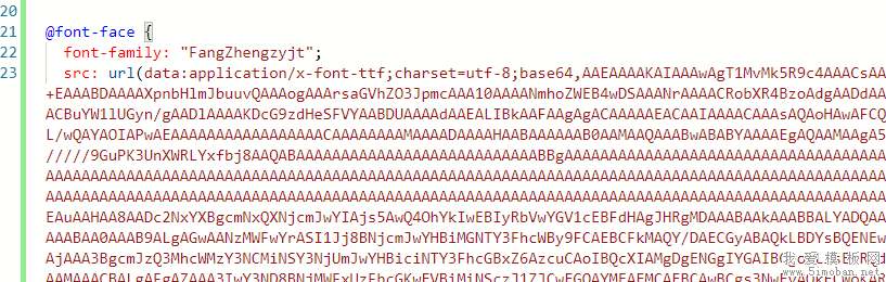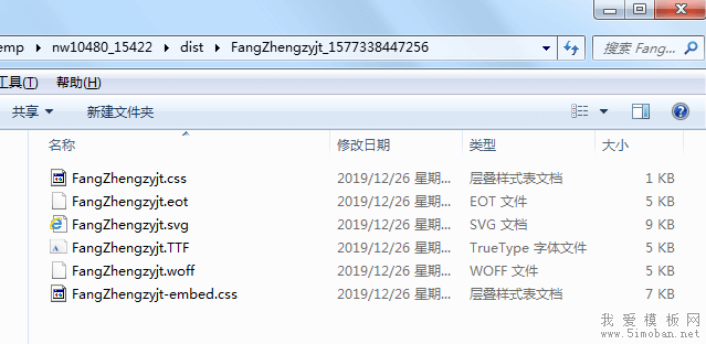 5、可以看到压缩后的几个字体文件只有5KB,如果是H5或者混合app,直接引用*.css文件就可以了,字体路径都在里面写好了,非常方便。而小程序的话,需要的是最后一个*-embed.css文件,用记事本打开,把它复制到小程序app.wxss文件